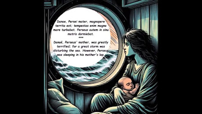 Image #1: Danaē, Perseī māter, magnopere territa est.│Danae, the mother of Perseus, was greatly frightened.